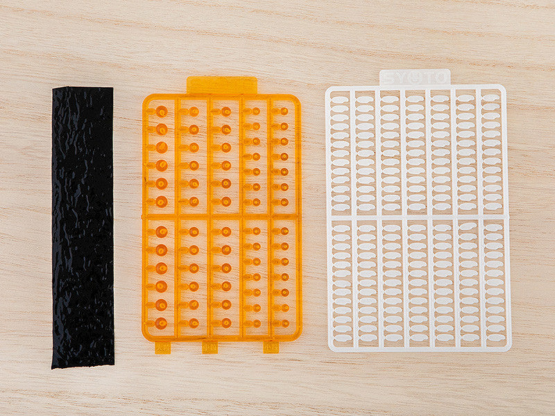Le fabricant de moules Syuto Seiko présente sa populaire série de modèles en plastique pour sushi, cette fois avec de l'ikura (œufs de saumon) ! Le kit comprend 364 pièces de grains de riz et 64 pièces d'œufs de saumon fidèles à la taille de leurs homologues réels.