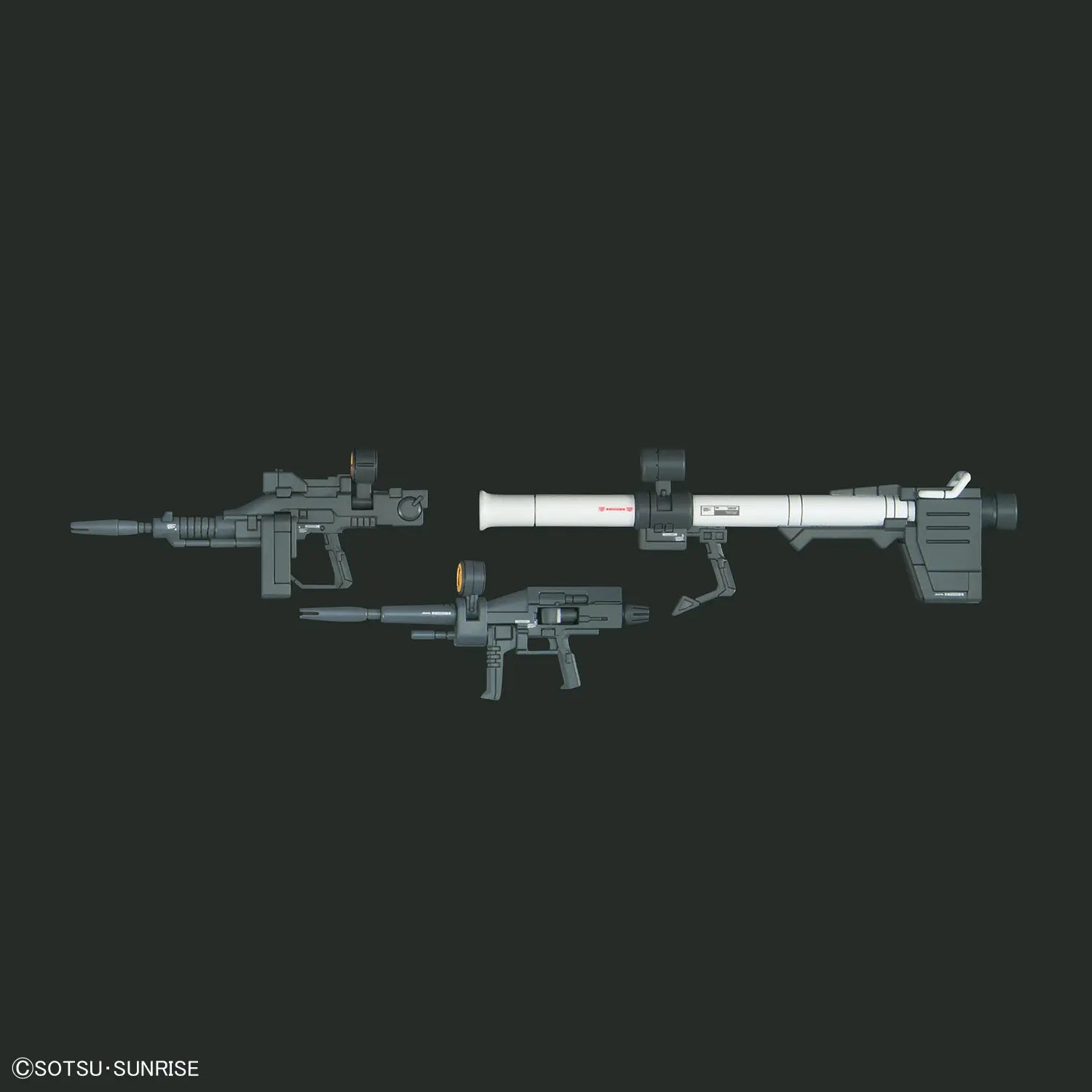 [Includes]: Fusil à faisceau (type début / milieu) x1 chacun, Sabre à faisceau x2, Bouclier x1, Hyper bazooka x1, Canon d'épaule x1, Feuille d'autocollants Foil x1, Feuille d'autocollants de marquage x1
