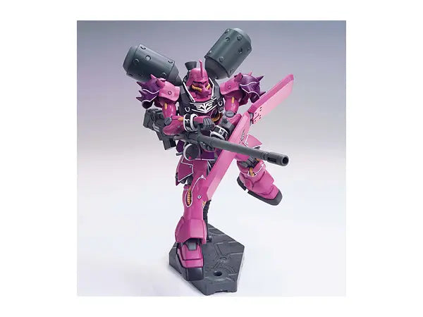 Not just your ordinary Geara Zulu! This Geara Zulu belongs to Angelo Sauper and sports quite a few changes from the original design such as its unique shoulder armor, customized shield, and the canisters mounted on the backpack. It's enormous weapons is held easily in one or both hands. A good amount of foil stickers are also provided for the customized markings.