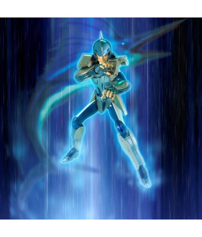 Saint Seiya licensed Myth Cloth EX figurine, with fully articulated plastic body and armour made largely of metal, which can be fitted to the armour holder (also known as the ‘Object’ or ‘Base’) supplied with the figurine.